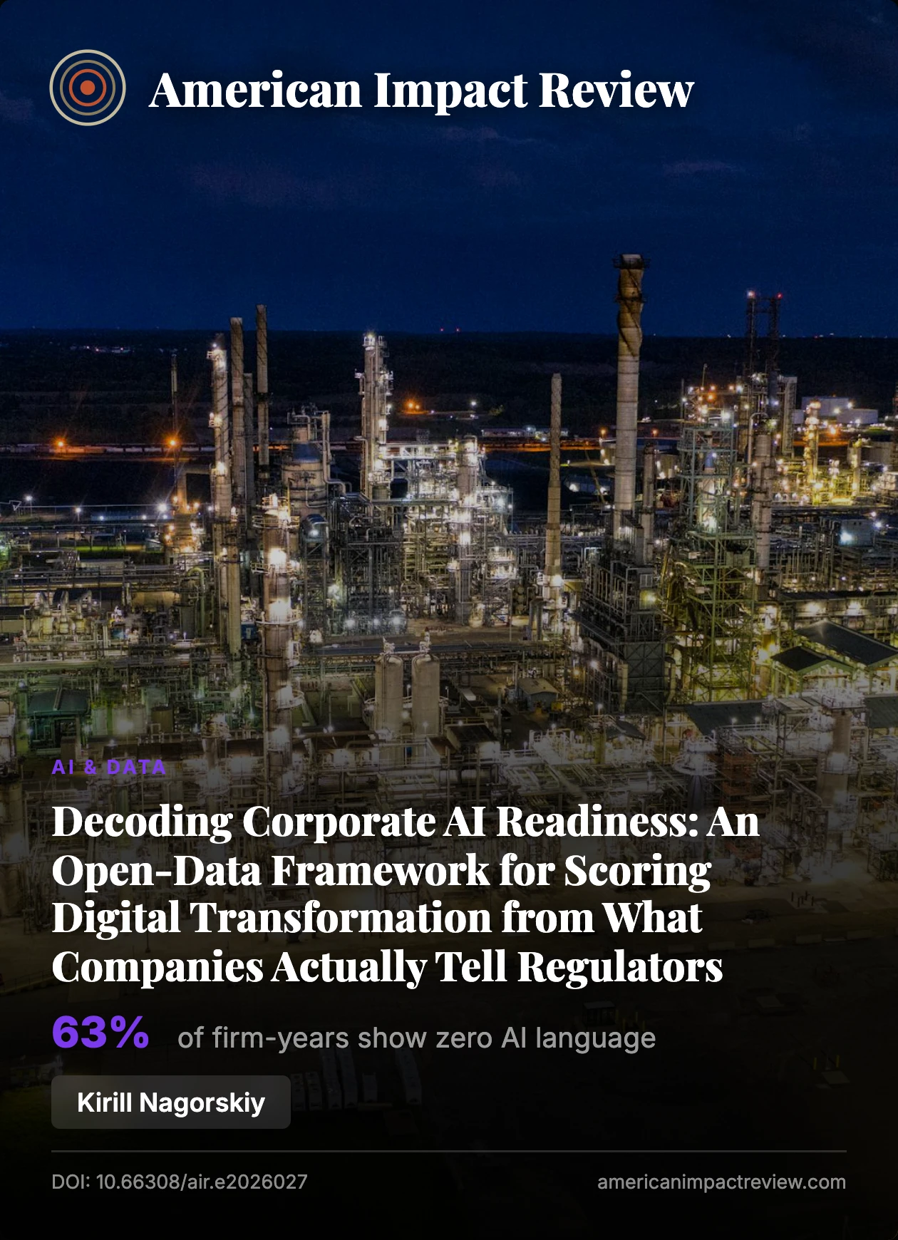 Originality/value: AIDI is the first open-data, purpose-built scoring framework that turns regulatory filings into a standardized AI-readiness metric. Unlike consultant rankings that cost six figures and cannot be verified, AIDI can be computed by any researcher with a laptop and an internet connection. It works for oil and gas today and is immediately portable to mining, utilities, manufacturing, or any sector with comparable disclosure requirements. The paper provides both the tool and the evidence that it captures something real.
