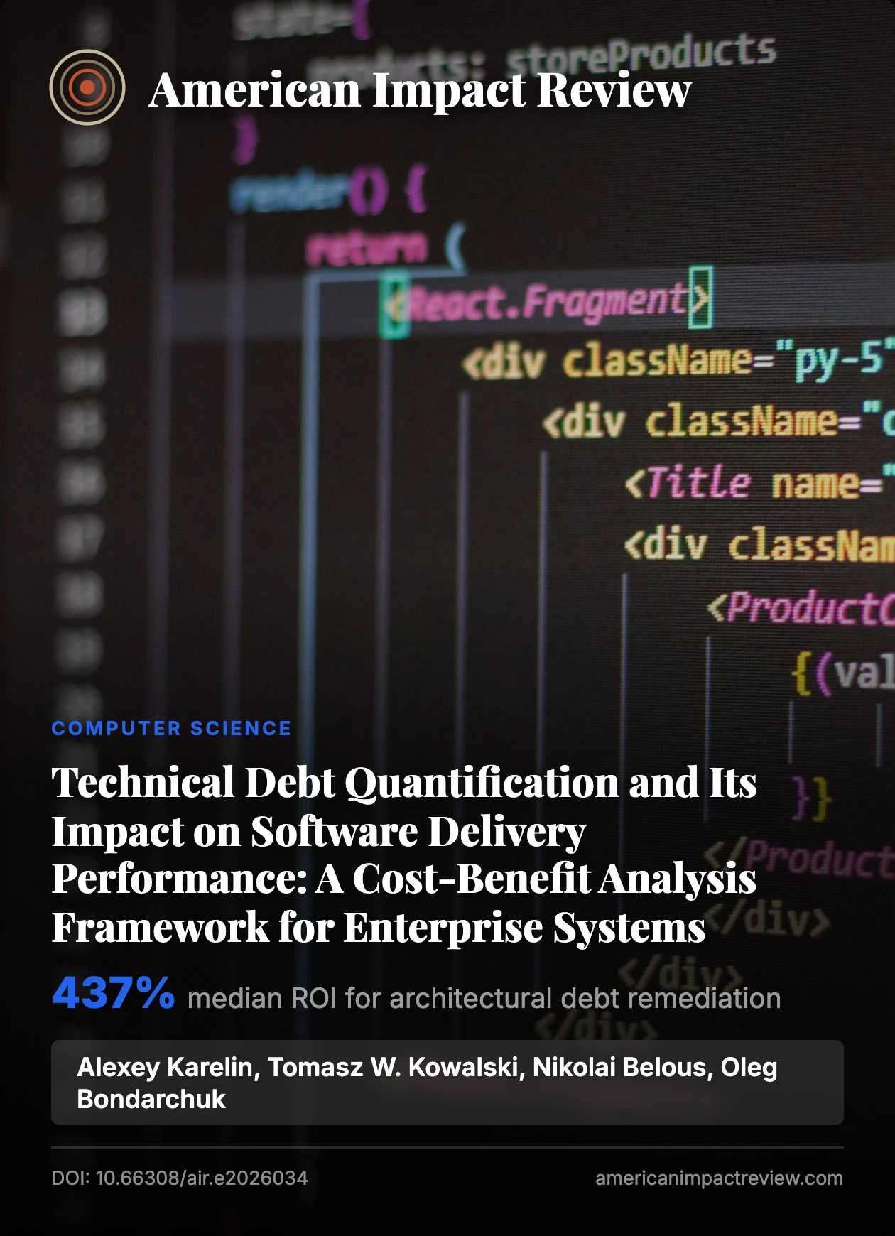 Technical debt has emerged as one of the most consequential challenges in enterprise software engineering, with industry estimates suggesting that organizations allocate between 20 and 40 percent of their technology budgets to servicing accumulated debt rather than advancing innovation. Despite the growing recognition of technical debt as a strategic concern, existing quantification approaches remain fragmented, and the empirical relationship between measurable debt indicators and downstream delivery performance is insufficiently understood. This study presents a cost-benefit analysis framework that integrates compound interest modeling of technical debt accumulation with the DORA DevOps metrics and the SPACE developer productivity framework. Using a mixed-methods design combining quantitative analysis of 89 enterprise software projects drawn from DevOps toolchain telemetry (Jira, GitHub, SonarQube) with survey data from 412 software engineering leaders across North American enterprises, this research establishes statistically significant relationships between technical debt density and degradation in deployment frequency (beta = -0.41, p < .001), lead time for changes (beta = 0.38, p < .001), and change failure rate (beta = 0.33, p < .01). The proposed Technical Debt Impact Model (TDIM) demonstrates that a one-standard-deviation increase in the debt-to-code ratio corresponds to a 23 percent reduction in delivery velocity and a 31 percent increase in defect density. Cost-benefit analysis reveals that systematic remediation programs targeting architectural and design debt yield a median return on investment of 287 percent over a 24-month horizon, with a break-even period of 4.7 months. These findings provide engineering leaders and technology executives with an empirically grounded decision framework for prioritizing debt remediation investments within constrained resource environments.
